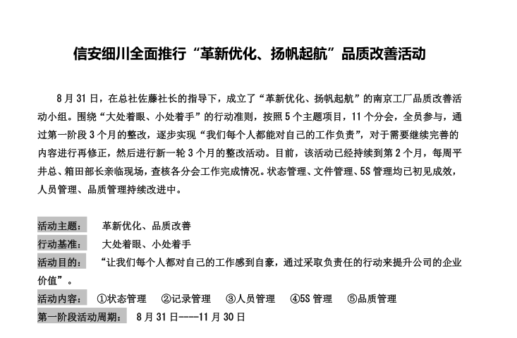 信安細(xì)川全面推行“革新優(yōu)化、揚(yáng)帆起航”質(zhì)量改善活動