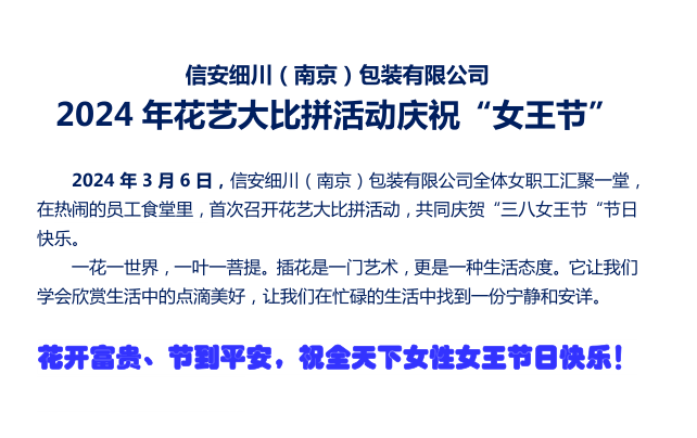 | 信安細(xì)川(南京)包裝有限公司花藝大比拼慶賀“三八女王節(jié)” | |